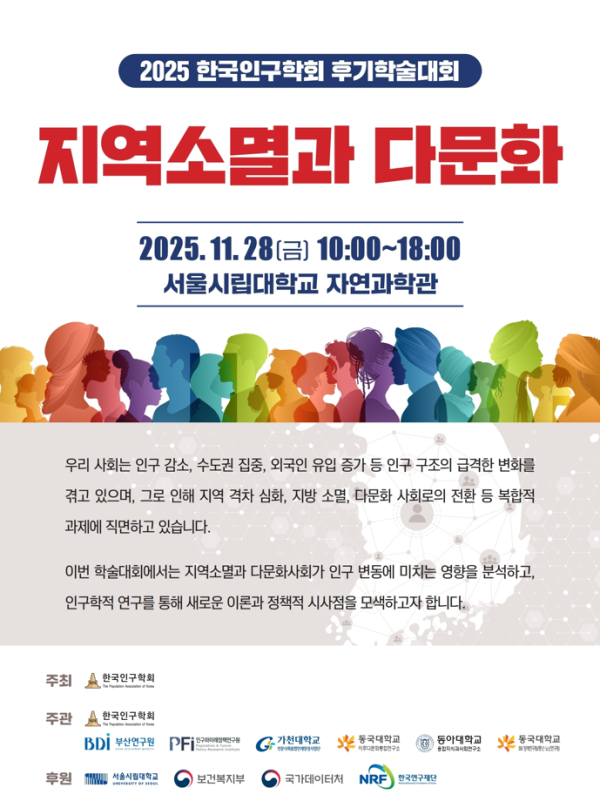 서울시립대학교는 자연과학관에서 ‘2025 한국인구학회 후기학술대회’를 개최한다고 28일 밝혔다.